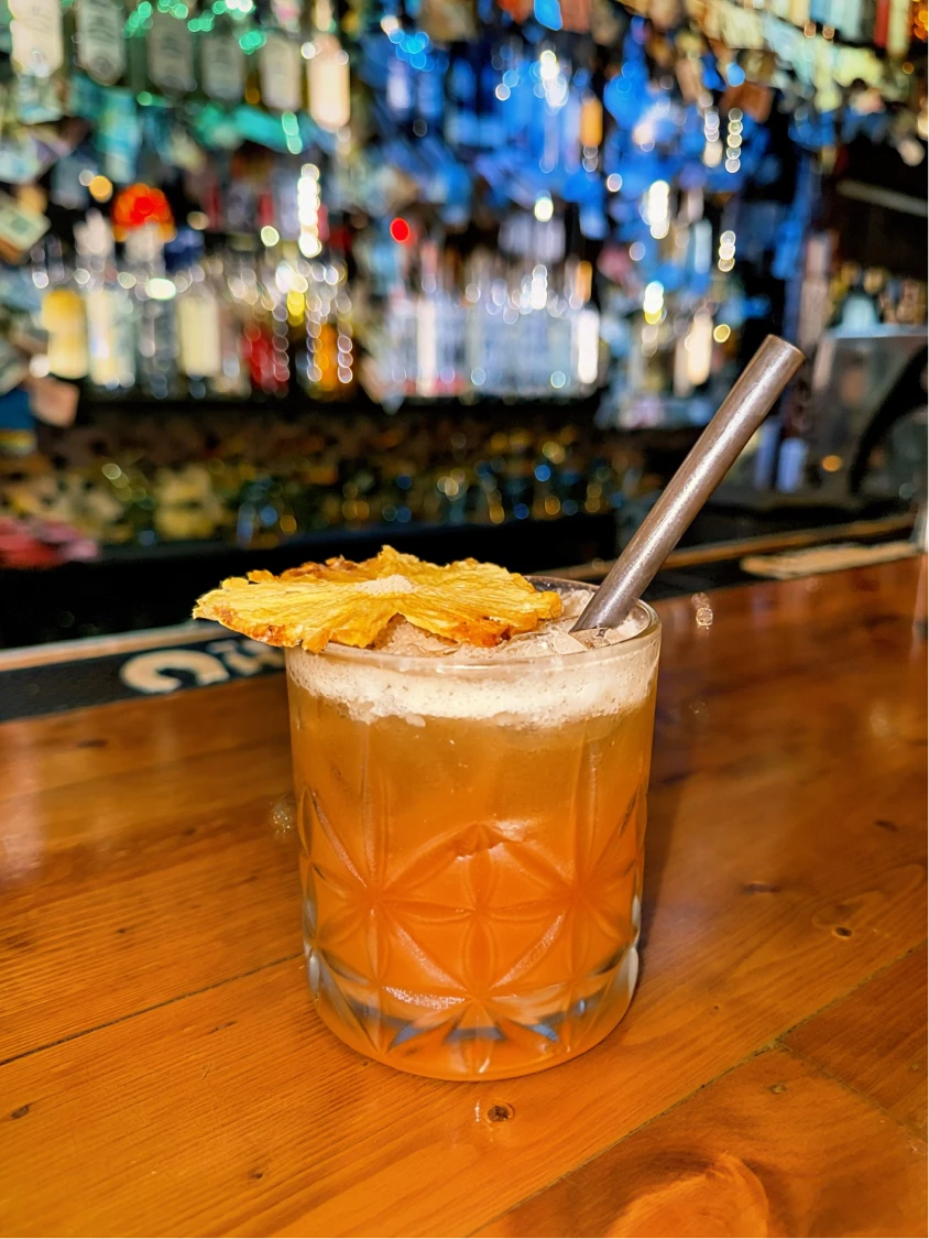 Cascahuín Blanco, Siete Misterios Doba-Yej Mezcal, Aperol, pineapple, agave, lime juice, orange bitters
