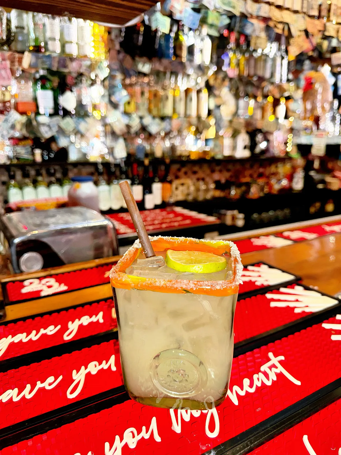 Patron Reposado, Grand Marnier, lime juice, agave & homemade lime salt
