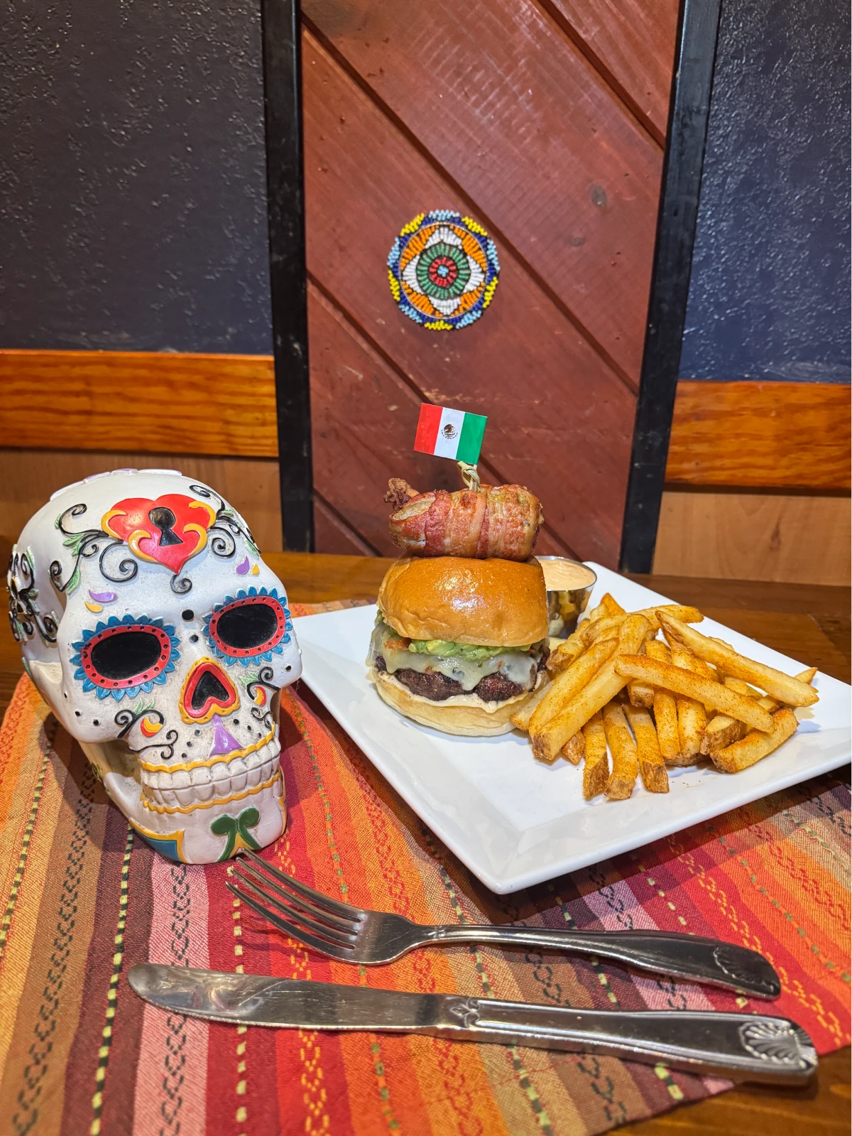8oz. Beef burger with bacon guacamole, pepperjack cheese, & roasted tomato mayo. Topped with a bacon wrapped cheese stuffed jalapeño. Served with our smoked chili fries & chipotle aioli.
