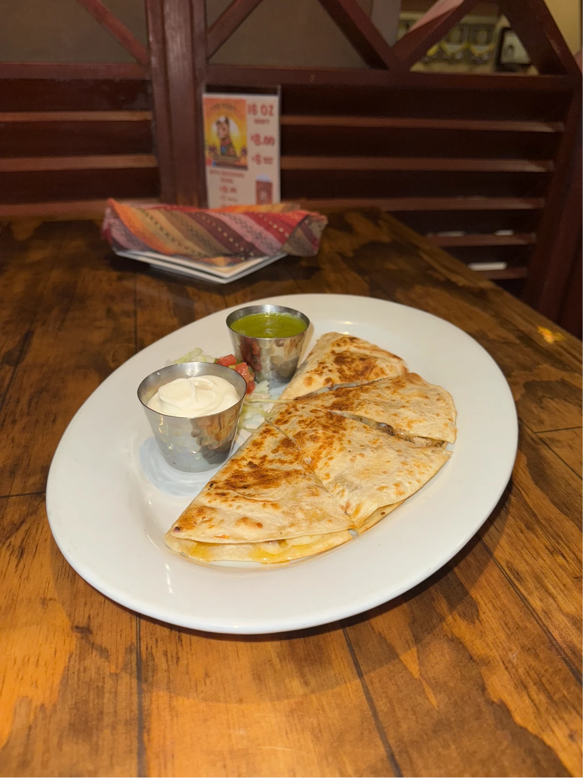 Grilled shrimp, pepper jack cheese, pico de gallo, cilantro, & siracha aioli in a grilled flour tortilla, with crema & salsa verde.