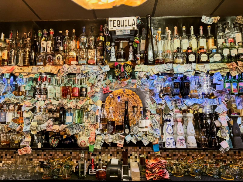 Extensive selection of premium tequilas including blanco, reposado, and añejo varieties