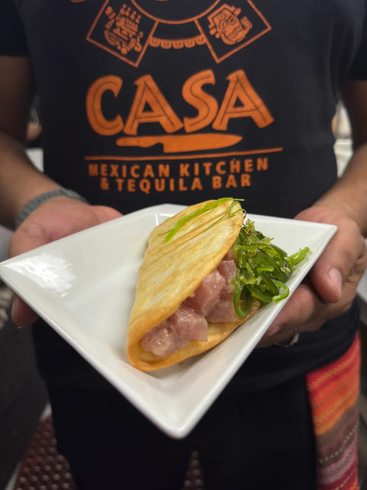 Chino Latino Post date December 3, 2025 Fresh tuna, soy marinade, wakame salad, avocado, toasted sesame seeds. Share: ← Chicken → Gringo